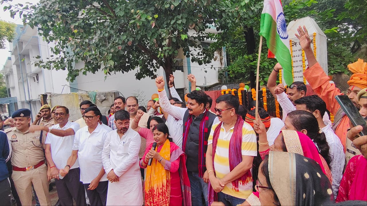 पदयात्रा के दौरान शामिल सभी ने हाथ में तिरंगा झण्डा लेकर सरदार वल्लभ भाई पटेल जी अमर रहे, भारत माता की जय जैसे नारो से माहौल को राष्ट्रप्रेम और एकता की भावना से ओत प्रोत कर दिया।