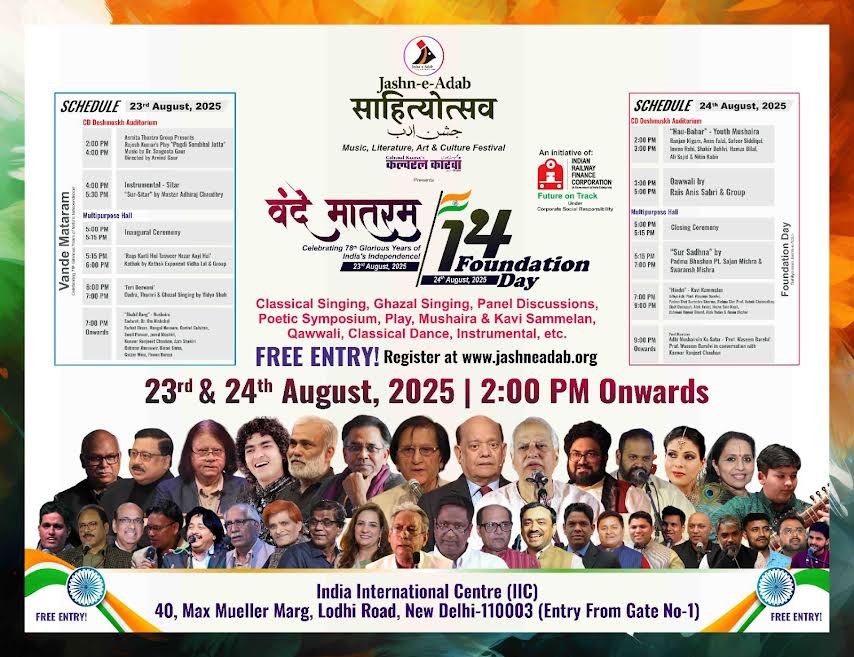 * 23 और 24 अगस्त, 2025 को भारत की स्वतंत्रता की 78वीं और जश्न-ए-अदब साहित्योत्सव की 14वीं वर्षगाँठ का गवाह बनेगा ‘वंदे मातरम’