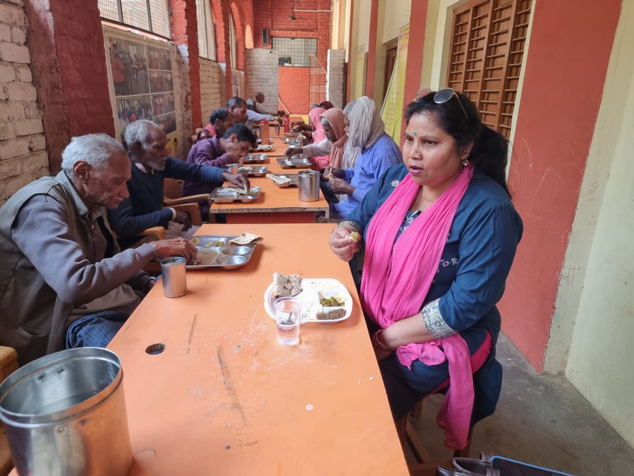लखनऊ। अन्नपूर्णा गृह वयोश्रेष्ठ मन्दिरम् में रहने वाले वयोश्रेष्ठ जनों के साथ बैठकर भोजन प्रसाद पाकर आत्म संतुष्टि का अलौकिक अनुभव है। राजमती सिंह जिला समाज कल्याण अधिकारी आकस्मिक निरीक्षण के लिये सार्वजनिक शिक्षोन्नयन संस्थान द्वारा संचालित वयोश्रेष्ठ मन्दिरम् अल्लीपुर पहुँची ।उस समय वुजुर्ग भोजन प्रसाद ग्रहण कर रहे थे वो वृद्धजनो के साथ ही बैठकर भोजन की गुणवत्ता देखने हेतु साथ ही भोजन ग्रहण करते-करते बाबा और दादी से भोजन सम्बन्धित विस्तृत जानकारी प्राप्त की। भोजनोपरान्त उन्होने कहा कि वयोश्रेष्ठ मन्दिरम् मे भोजन स्वादिष्ट और रूचिकर बनाया जाता है तथा सभी संवासी व्यवस्था से खुश व पूर्णरूप से संतुष्ट हैं। भोजन के समय 51 बाबा तथा 39 दादी उपस्थित पाये गये।
