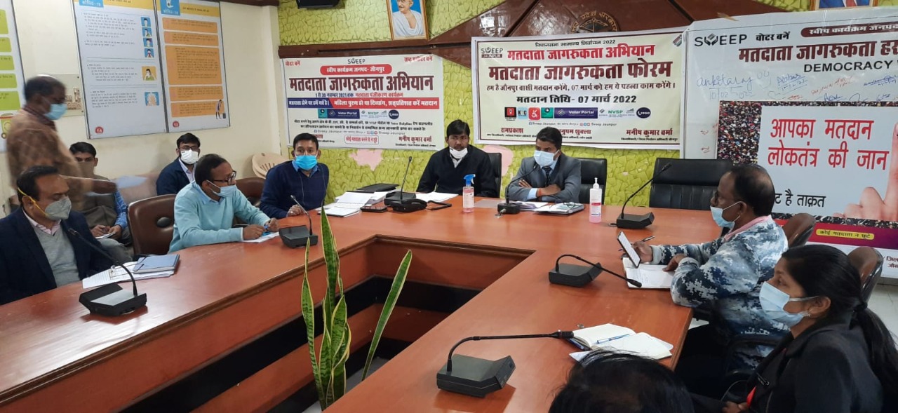 जौनपुर विधानसभा सामान्य निर्वाचन-2022 को स्वतंत्र, निष्पक्ष एवं शांतिपूर्ण ढंग से कराने को लेकर जिला निर्वाचन अधिकारी मनीष कुमार वर्मा ने सभी विधानसभा क्षेत्रों में तैनात उड़न दस्ता, सचल दस्ता, एमसीएमसी की बैठक कलेक्ट्रट सभागार में की गयी।