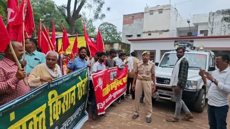 विभिन्न मांगों को लेकर संयुक्त किसान मोर्चा और भारतीय कम्युनिस्ट पार्टी के कार्यकर्ताओं ने एसडीएम सदर न्यायालय के सामने किया प्रदर्शन