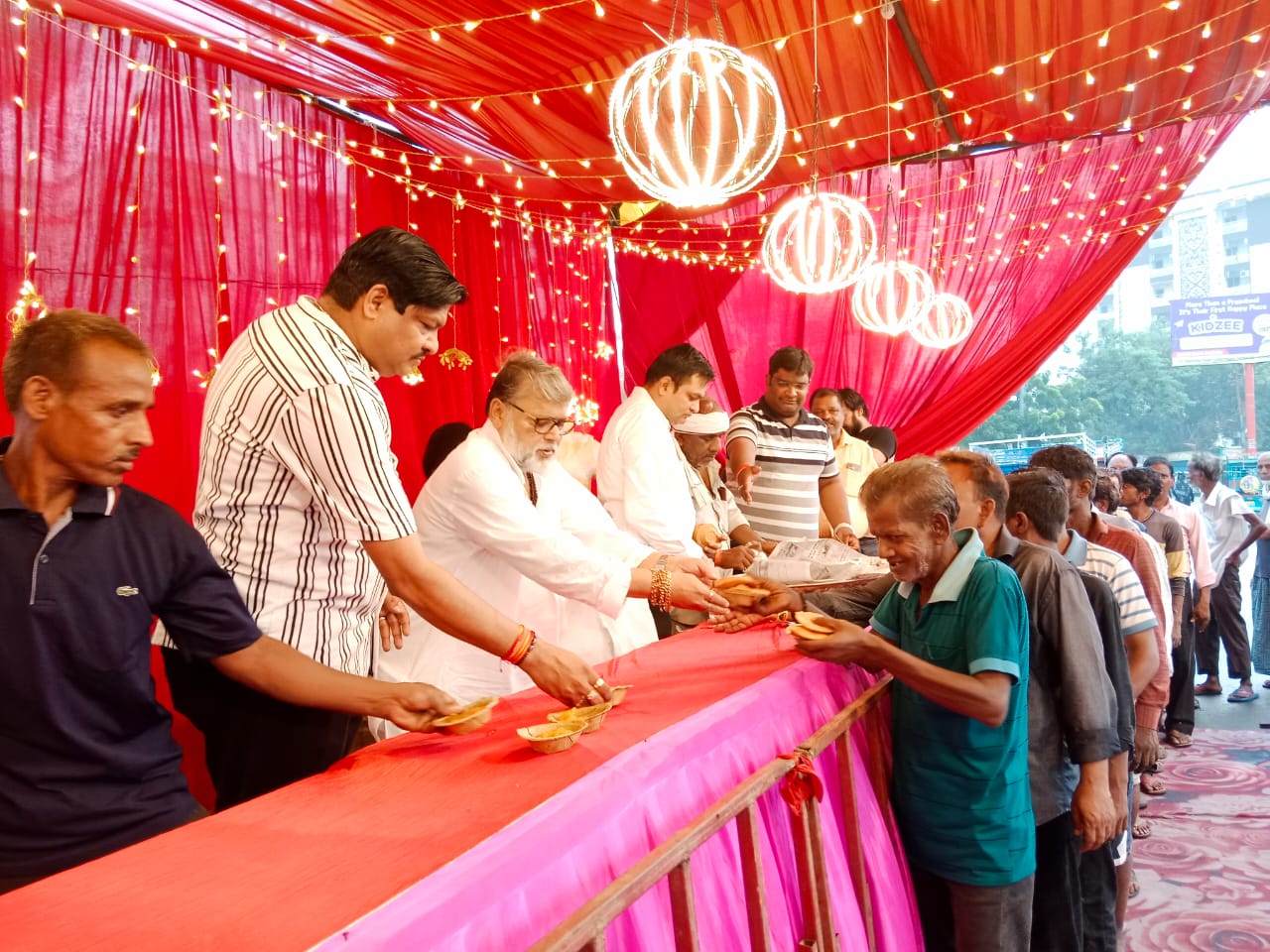 लखनऊ। श्रावण मास शुक्ल सत्तमी को जन्में श्रीराम चरितमानस के रचयिता गोस्वामी तुलसीदास जी की जयंती के अवसर पर श्री रामलीला समिति के तत्वावधान में ऐशबाग श्री रामलीला परिसर गेट 2 पर विशाल भण्डारा का आयोजन किया गया। जिसमें हजारों की संख्या में भक्तों ने पूड़ी सब्जी, जलजीरा, पेयजल और बूंदी प्रसाद स्वरूप ग्रहण किया। जिसका शुभारंभ समिति अध्यक्ष हरीश चन्द्र अग्रवाल ने पूजा अर्चना के पश्चात भण्डारा की शुरुआत कराया।