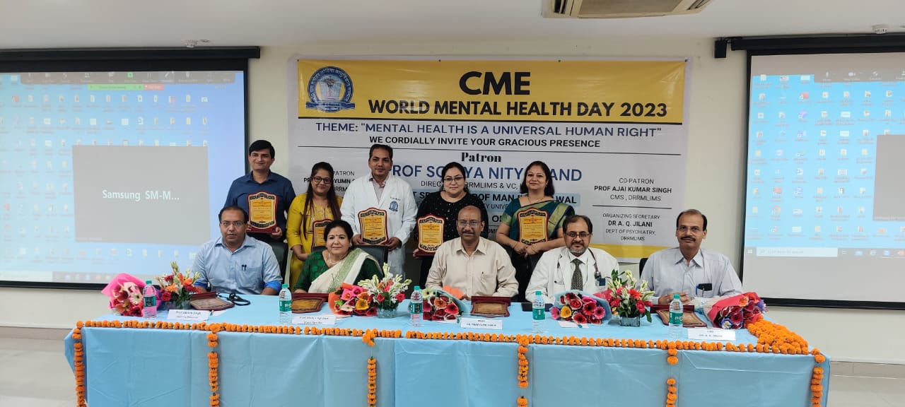लखनऊ। डॉ राम मनोहर लोहिया आयुर्विज्ञान संस्थान में मानसिक एवं मेडिसिन विभाग के संयुक्त प्रयास से विश्व मानसिक स्वास्थ्य दिवस के अवसर पर संगोष्ठी का आयोजन संस्थान की निदेशक प्रो सोनियानित्यानंद के मार्ग दर्शन में किया गया।
