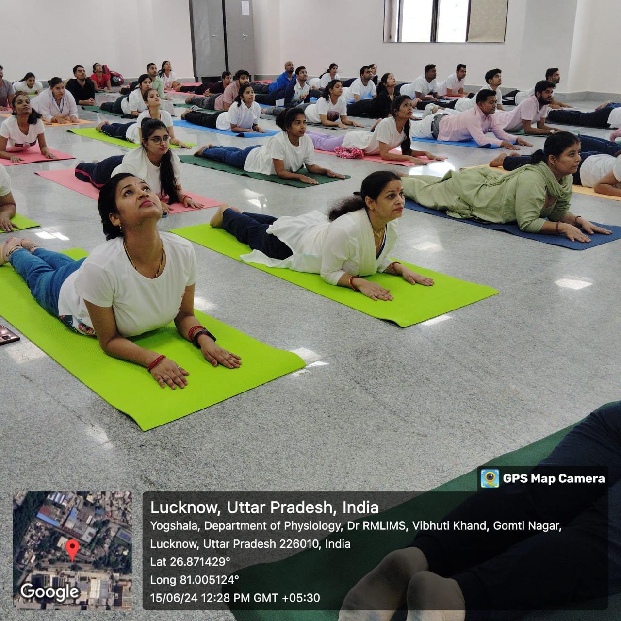 लखनऊ। राज्यपाल की प्रेरणा से डॉ राम मनोहर लोहिया संस्थान के निदेशक के नेतृत्व में राम मनोहर लोहिया आयुर्विज्ञान संस्थान की योगशाला में विश्व योग दिवस के अवसर पर पूर्वाभ्यास में संस्थान के शिक्षकगण,कर्मचारीगण एवं छात्र-छात्राओं द्वारा बढ़-चढ़कर भाग लिया गया ।
