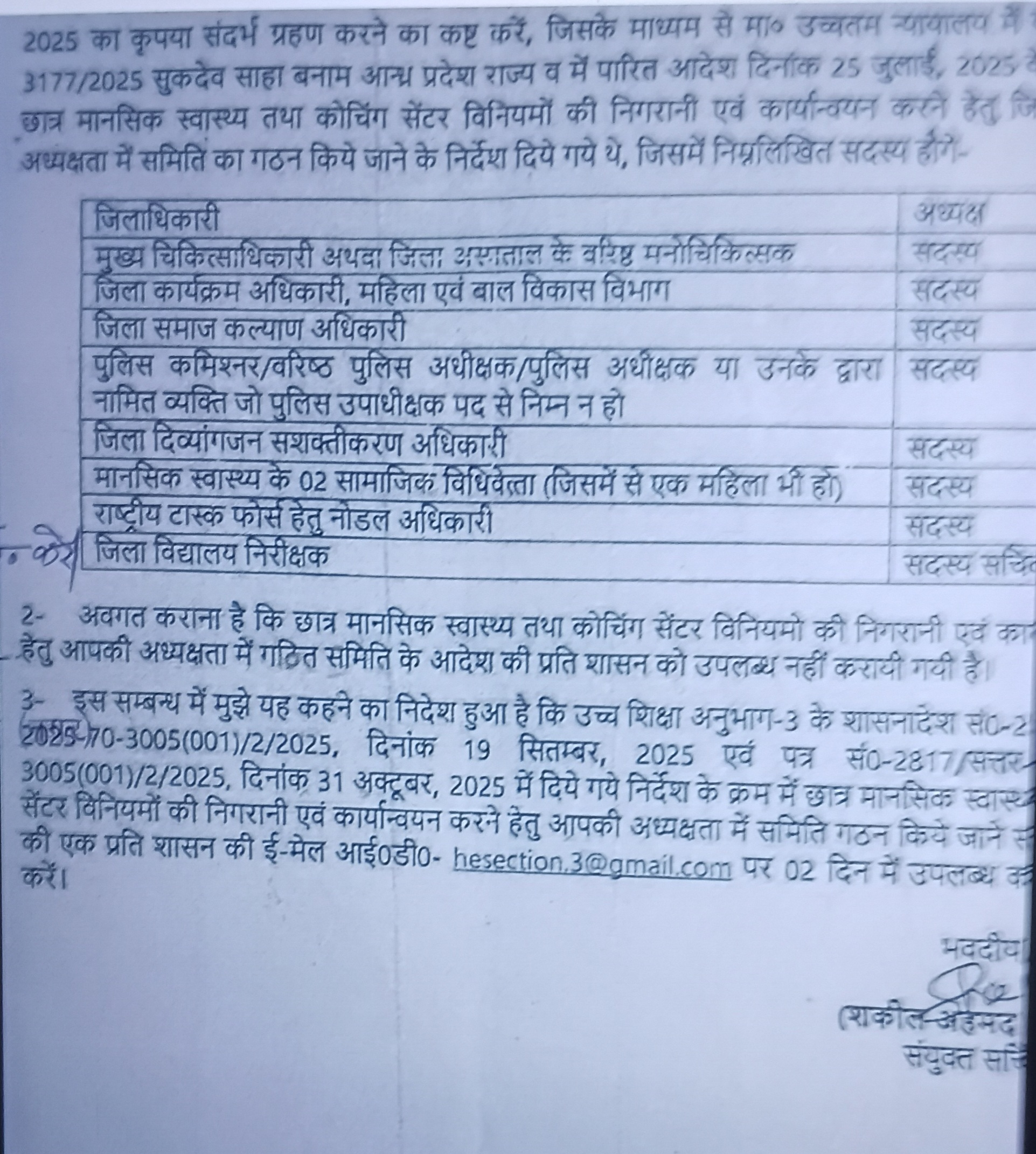 अयोध्या।जिला विद्यालय निरीक्षक कार्यालय में सिर्फ एक दर्जन वैध कोचिंग संस्थान ही पंजीकृत है। जबकि जिले के सभी जगहों पर सैकड़ो कोचिंग संस्थान अवैध रूप से संचालित है। इनमें से कई अवैध रूप से संचालित पाए जाने वाले कोचिंग संस्थानों पर जिला विद्यालय निरीक्षक द्वारा जुर्माना भी लगाया गया लेकिन अभी तक अधिकतर कोचिंग संचालक जो की अवैध रूप से हैं उन्होंने जुर्माने की रकम कार्यालय में नहीं जमा किया है।जिसके लिए इन पर अंकुश लगाने के लिए अब शासन सख्त कदम उठा रही है।अब अवैध रूप से संचालित कोचिंग संस्थानों पर अंकुश लगाने के लिए जिला अधिकारी की अध्यक्षता में समित का गठन किया गया है।इस समिति में जिला अधिकारी निखिल टीकाराम फुंडे अध्यक्ष है।वहीं जिला विद्यालय निरीक्षक डॉक्टर पवन कुमार तिवारी इस समिति के सचिव हैं।उनके अलावा इस समिति में सीएमओ/ अथवा जिला चिकित्सालय के वरिष्ठ मनोचिकित्सक, जिला कार्यक्रम अधिकारी‌, जिला समाज कल्याण अधिकारी, पुलिस विभाग के उच्चाधिकारी‌, जिला दिव्यांगजन सशक्तिकरण अधिकारी, मानसिक स्वास्थ्य के दो सामाजिक विधिवेत्ता(जिनमें से एक महिला हो) राष्ट्रीय टास्क फोर्स हेतु नोडल अधिकारी सदस्य के रूप में नामित किए गए हैं जो अवैध रूप से संचालित कोचिंग संस्थानों तथा अन्य शिक्षण संस्थानों पर अंकुश लगायेगे। बताते चलें जिले शहर के विभिन्न मुहल्लों, कालोनियो के अलावा विभिन्न तहसीलों ब्लॉकों पर अवैध रूप से संचालित कोचिंग व शिक्षा संस्थानों द्वारा भोले भाले छात्रों तथा उनके अभिभावकों से शिक्षक के नाम पर भारी भरकम रकम वसूली जा रही है जबकि सुविधा के नाम पर कुछ भी नहीं दिया जा रहा है। बताते चलें शहर के नियांवा, रिकाबगंज,साहबगंज, हैदरगंज, वजीरगंज, देवकाली, देवकाली बायपास, देवकाली तिराहा,नाका,सिविल लाइन शाहिद प्रमुख चौराहों पर काफी संख्या में अवैध रूप से कोचिंग संस्थान संचालित हैं।वहीं ग्रामीण अंचलों में बीकापुर, तारुन, जाना बाजार हैदरगंज रामपुर बागान मिल्कीपुर गोसाईगंज रुदौली सहित अधिकतर चौराहों व बाजारों में अवैध रूप से कोचिंग संस्थान संचालित है जहां पर शिक्षक के नाम पर दिखावा कर भोले भाले छात्रों व उनके परिजनों से भारी भरकम पैसे वसूल रहे हैं।परंतु इस पर संबंधित विभाग रोक लगाने में असफल दिखाई दे रहा है। अब देखना या है डीएम की अध्यक्षता में गठित समिति के सदस्य इन अवैध कोचिंग संचालकों पर कब तक रोक लगाते है।