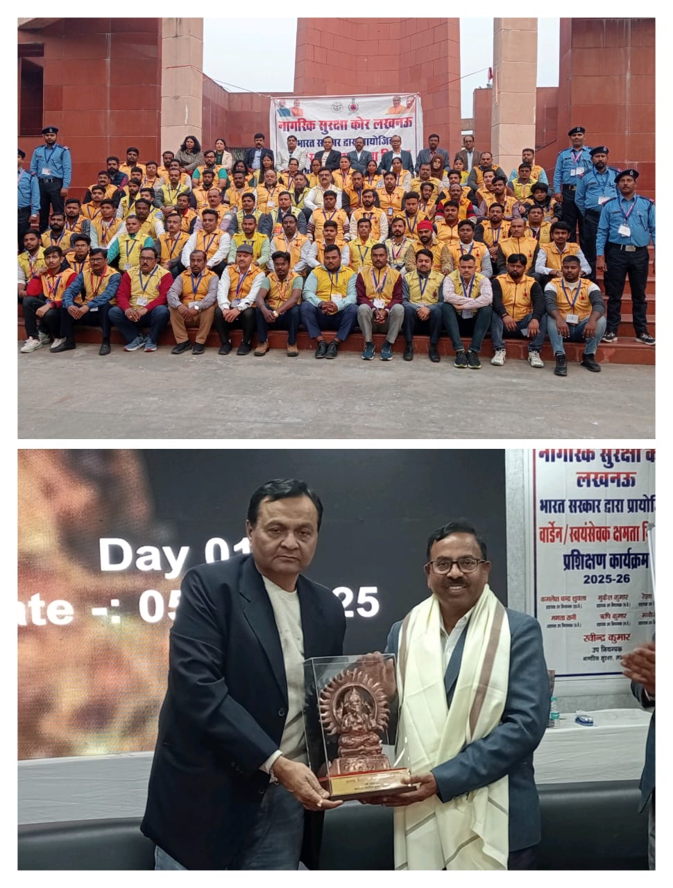 मुख्य अतिथि श्री ज्ञानचन्द्र गुप्ता जी को चीफ वार्डन अमरनाथ मिश्र के पुष्पगुच्छ एवं अंगवस्त्र के साथ स्मृति चिन्ह देकर सम्मानित किया। यह प्रशिक्षण लगभग एक सप्ताह से निरंतर चल रहा था, जिसकी कुछ महत्वपूर्ण गतिविधियों एवं प्रदर्शन का अवलोकन एल ई डी पर मुख्य अतिथि द्वारा किया गया।