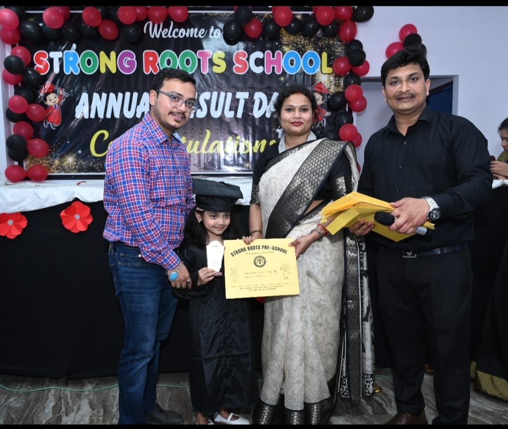 स्ट्रांग रूट्स प्री-स्कूल, शाहाबाद का वार्षिकोत्सव/एनुअल रिज़ल्ट डे का आयोजन रेलवे स्टेशन रोड स्थित एक मैरीज लॉन में बड़े हर्षोल्लास के साथ किया गया।समारोह का शुभारंभ स्कूल के प्रबंधक अमित श्रीवास्तव द्वारा सरस्वती मां की प्रतिमा के समक्ष दीप प्रज्वलन और “हम होगे कामयाब एक दिन” गीत पर नन्हे मुन्ने बच्चो की मनोहर प्रस्तुति के साथ शुरू हुआ।इस अवसर पर स्ट्रांग रूट्स प्री स्कूल के प्रबंधक अमित श्रीवास्तव ने कहा कि हम सबका प्रयास बच्चो की नींव को मजबूत करना होना चाहिए।बेहतर शिक्षा के साथ अच्छे संस्कार छोटे बच्चों के भविष्य को संवारते है।स्ट्रॉग रूट प्री स्कूल आज शाहाबाद का एक ब्रांड है और उसके ब्रांड एंबेसडर हमारे बच्चे और अभिभावक है।