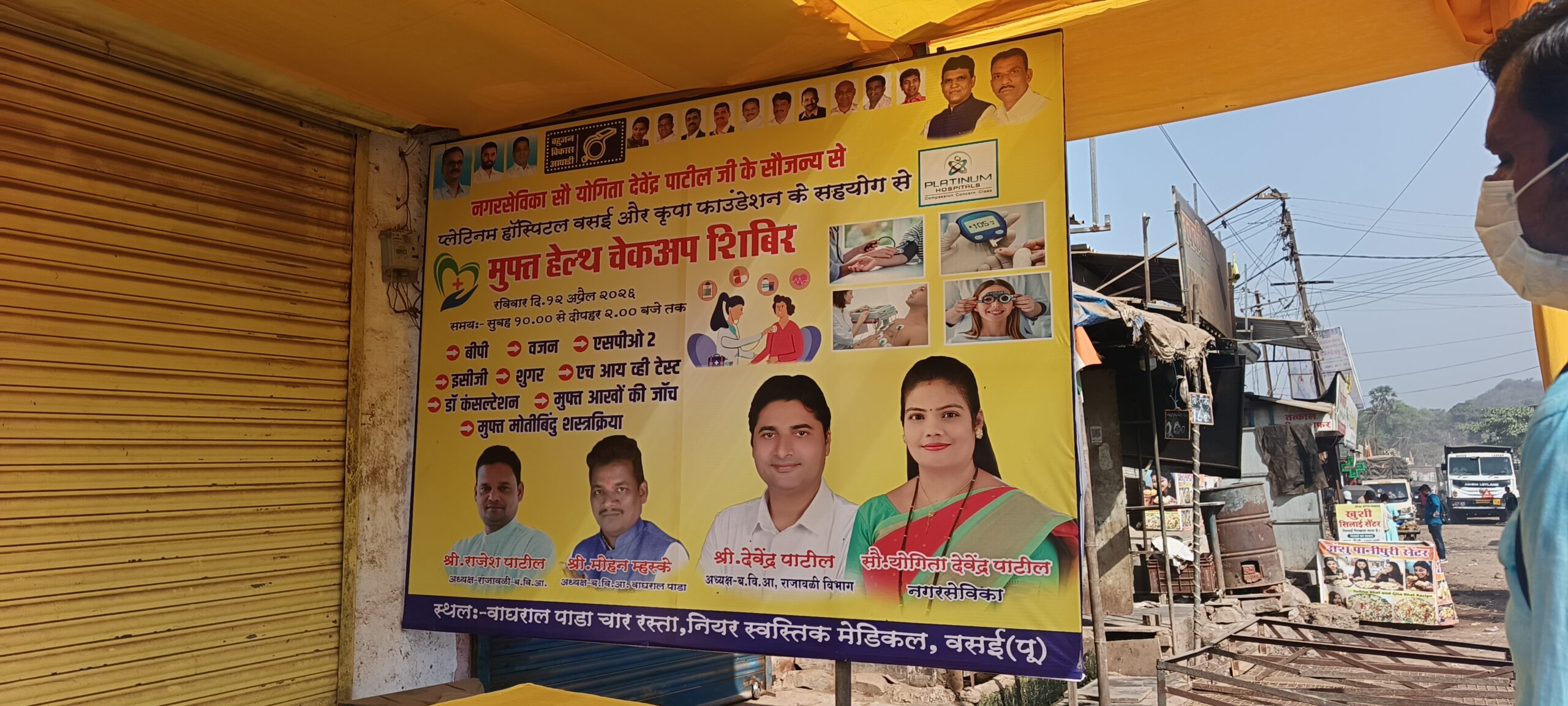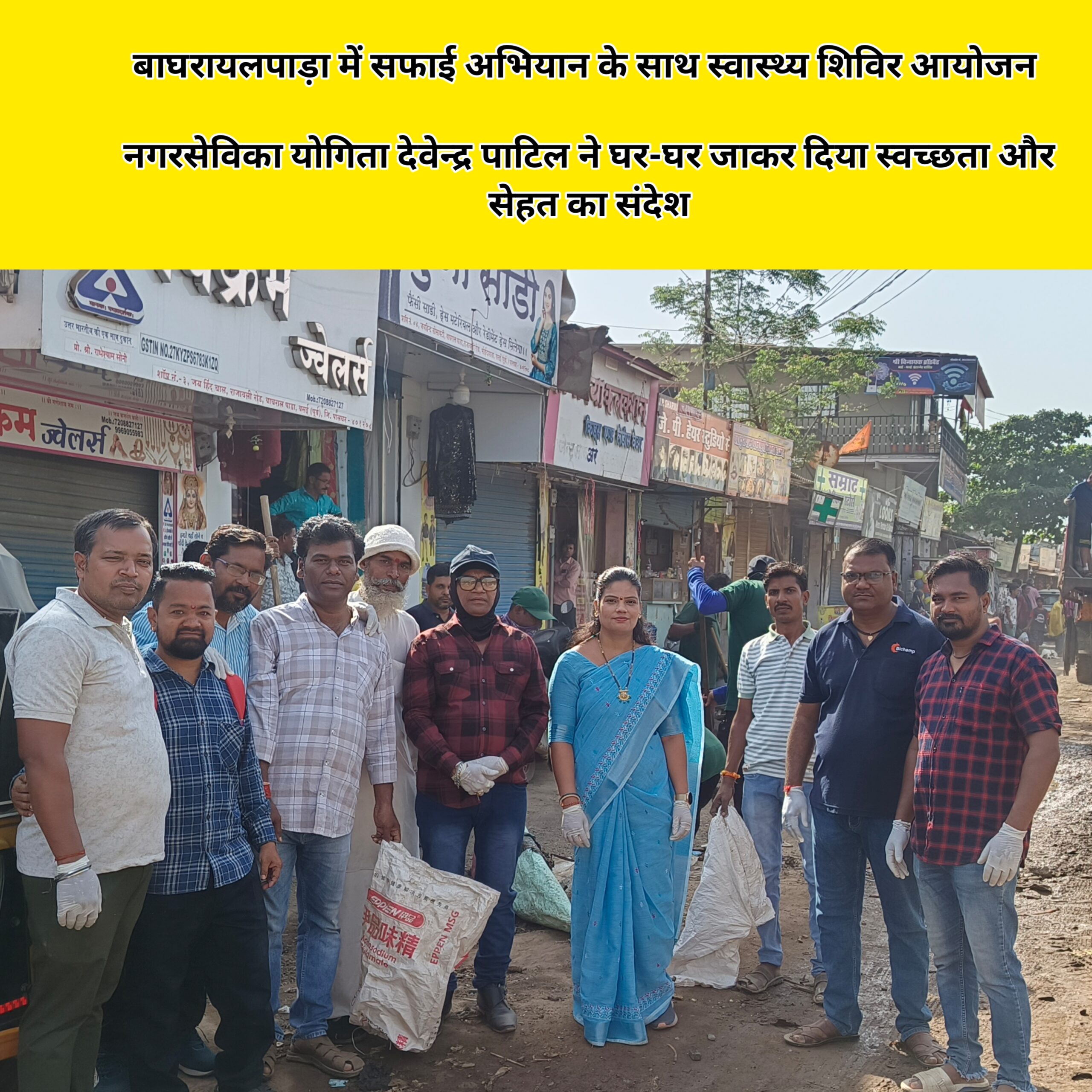 वसई-विरार महानगरपालिका क्षेत्र के बाघरायलपाड़ा इलाके में रविवार को स्वच्छता एवं स्वास्थ्य को लेकर व्यापक जन-जागरूकता अभियान का आयोजन किया गया। इस अभियान का नेतृत्व नगरसेविका योगिता देवेन्द्र पाटिल ने किया, जिसमें स्वच्छता दूतों और स्थानीय नागरिकों की सक्रिय भागीदारी रही।