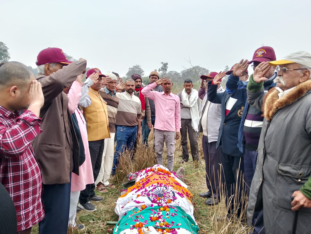लखनऊ। मेजर वीरेंद्र सिंह तोमर ने बताया कि आज दि० 05 फरबरी 2024 दिन सोमवार प्रात: ग्यारह बजे ग्राम पंचायत मिहोंनी माधौगढ़ में हवलदार अरविन्द कुमार सिंह राजावत पुत्र कैप्टन महेंद्र सिंह राजावत जी पंचतत्व में विलीन हो गए,जांवाज हवलदार राजावत जी सेना की कोर्प आफ सिग्नल में अटठारह बर्ष कठिन से कठिन परिस्थितियों में सेवाएं देने बाद ऐक्षिक सेवानिवृति होकर कानपुर में पी ज़ी आई मैडिकल होसपिटल में देते हुए आज अचानक भरे पूरे परिवार एवं समाज को अलविदा कह पंचतत्व में विलीन हो गए उन्हें अखिल भारतीय पूर्व सैनिक सेवा परिषद जनपद जालौन के पदाधिकारियों व तमाम गणमान्य नागरिकों ने राष्ट्रीय ध्वज के साथ सलामी के साथ अश्रुपूर्ण विदाई दी जिसमें अखिल भारतीय पूर्व सैनिक सेवा परिषद जनपद जालौन के संरक्षक कैप्टन मास्टर सिंह, अध्यक्ष सूबेदार मेजर आशाराम दोहरे, उपाध्यक्ष सूवेदार रूपराम पाल, महासचिव कैप्टन गंगाराम पाल उपाध्यक्ष सूवेदार एच एस भदौरिया सूवेदार बलराम पाल सूवेदार अर्जुनसिंह सेंगर हवलदार रामावतार तिवारी,लैपटीनेन्ट रामशंकर राठौर सैनिक बन्धु कमेंटी उपाध्यक्ष कैप्टन महेंद्र सिंह राजावत, नायव सूबेदार परशुराम जी सूवेदार बाबूलाल राठौर हवलदार पर्वत सिंह, हवलदार वीरेंद्र सिंह सूवेदार साधू सिंह, हवलदार दशरथ पाल, सूवेदार कराम आदि शामिल रहे।