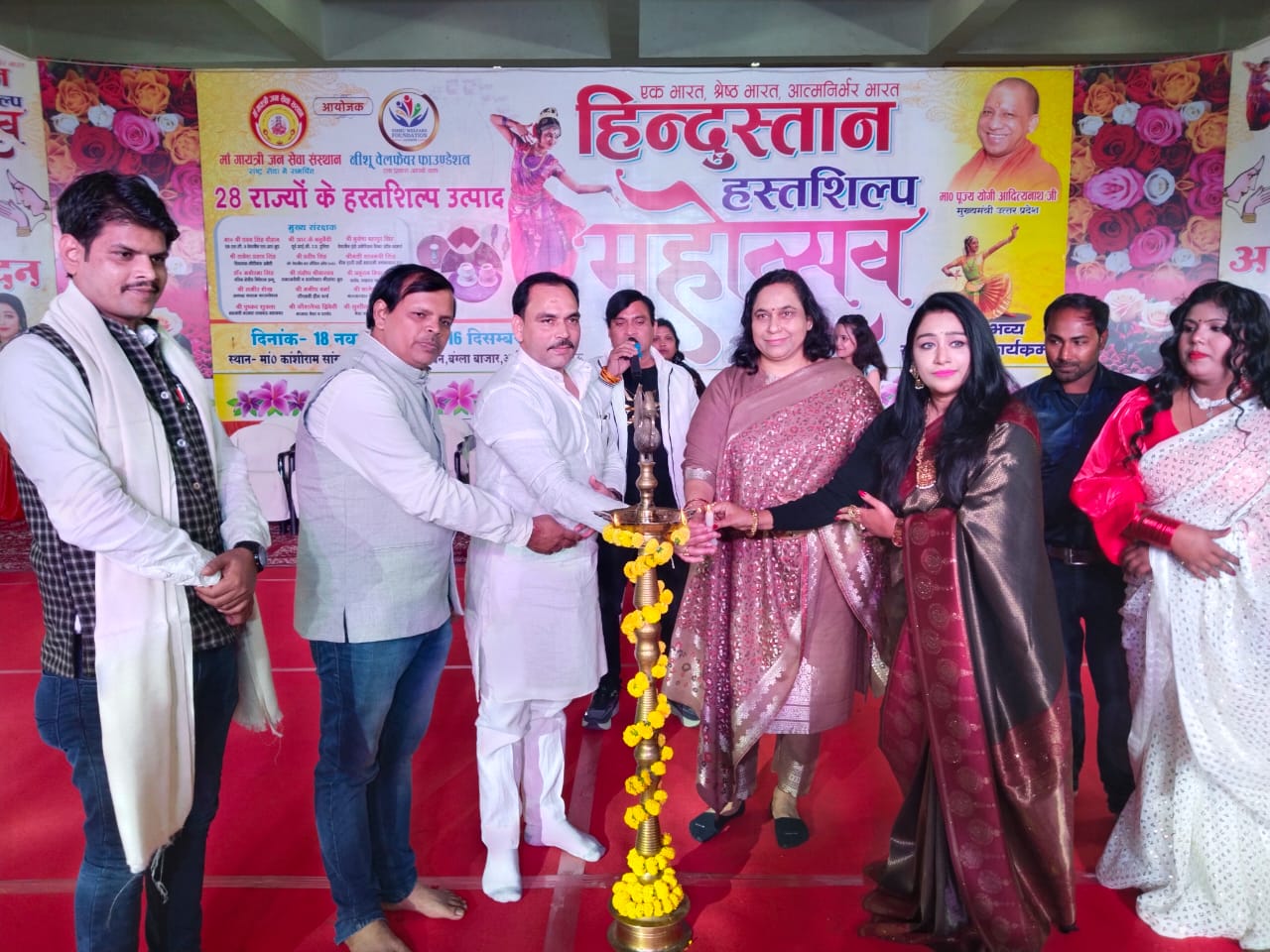 लखनऊ । कानपुर रोड आशियाना क्षेत्र में स्थित स्मृति उपवन में माँ गायत्री जन सेवा संस्थान एवं नीशू वेलफेयर फाउंडेशन द्वारा आयोजित हिंदुस्तान हस्तशिल्प महोत्सव में बतौर मुख्य अतिथि वरिष्ठ समाज सेविका श्रीमती नम्रता पाठक व विशिष्ट अतिथि समाज सेविका शिखा गोयल एवम महोत्सव अध्यक्ष अरुण प्रताप सिंह व गुंजन वर्मा और सूरज जैसवानी ,विनय दुबे, रनवीर सिंह, हेमू चौरसिया दीप प्रज्वलित कर सांस्कृतिक संध्या का आरंभ हुआ। वरिष्ठ समाजसेवी श्रीमती नम्रता पाठक ने हिंदुस्तान हस्तशिल्प महोत्सव की प्रशंसा करते हुए आयोजक अरुण प्रताप सिंह को बधाई देते हुऐ कहा की ऐसे कार्यक्रम होने से हस्तशिल्प को और बढ़ावा मिलता हैं एवम विलुप्त हो रही सभ्यता और संस्कृति को कायम कर सराहनीह कार्य किया हैं। सांस्कृतिक संध्या में कलाकारों ने मनोरम नृत्य,गीत,संगीत एवं कविताओं का मनोरम प्रस्तुती दी गई। टैलेंट शो पूजा साहनी के संयोजन में मोहिनी ने मेरे घर राम आए हैं…. गीत गाकर श्रोताओं को मंत्रमुग्ध किया। वैष्णवी ने शिव नृत्य कर दर्शकों को घुमाया नचाया इसी क्रम में अनन्या, रिद्धि, ममता, ओम गुप्ता, मोहिनी, वैष्णवी गीता, अमित, जान्हवी, ममता और अनन्या ने प्रस्तुति दी। स्वरांजलि सांस्कृतिक संस्था निर्देशक इंजी ० दिनेश कुमार श्रीवास्तव के संयोजन से जुड़े बिभिन्न गायन ,नृत्य के कलाकारों ने अपनी कला का बहुत ही मनभावन एवं उत्कृष्ट कला का प्रदर्शन किया। गायन में इंजी दिनेश कुमार श्रीवास्तव के अलावा फैसल नसीम, अनिल श्रीवास्तव ,रज्जन लाल, चंद्र मोहन मिश्रा ,संगीता ,प्रतिभा रानी,मृदुला भटनागर ,अर्चना श्रीवास्तव, सोनिया सक्सेना ने एक से बढ़कर एक प्रस्तुति से श्रोताओं का मन मोह लिया। वही मातृभाषा हिंदी संगठन के तत्वाधान में संयोजक कुमार लक्ष्मीकांत एवं अंबुज उषा नंदन, अंकुर पाठक, पीयूष योगी, अशोक, नीतू, कृति शर्मा , वानी और प्रीति सिंह आदि कवियों द्वारा प्रस्तुति पर उपस्थित श्रोता जमकर ठहाके लगाते हुए हास्य कविता के मजे लूटे । अंत में आयोजक अरुण प्रताप सिंह एवं गुंजन वर्मा द्वारा प्रदेश के विभिन्न जनपदों से आये कलाकारों एवं कवियों को पुष्पगुच्छ एवं अंग वस्त्र पहना सम्मानित किया गया । इस अवसर पर मंच से संस्थाध्यक्ष महोत्सव आयोजक ने बताया कि हिंदुस्तान हस्तशिल्प महोत्सव का मुख्य उद्देश्य विलुप्त हो रही लोककला एवं हस्तशिल्प कारीगरों,बुनकरो को बढ़ावा देना है। इस दौरान मंच पर आयोजक समिति के मनोज सिंह चौहान,प्रियंका सिंह,उषा गोस्वामी आदि उपस्थित रहे । मंच का संचालन प्रदीप शुक्ला द्वारा किया गया।