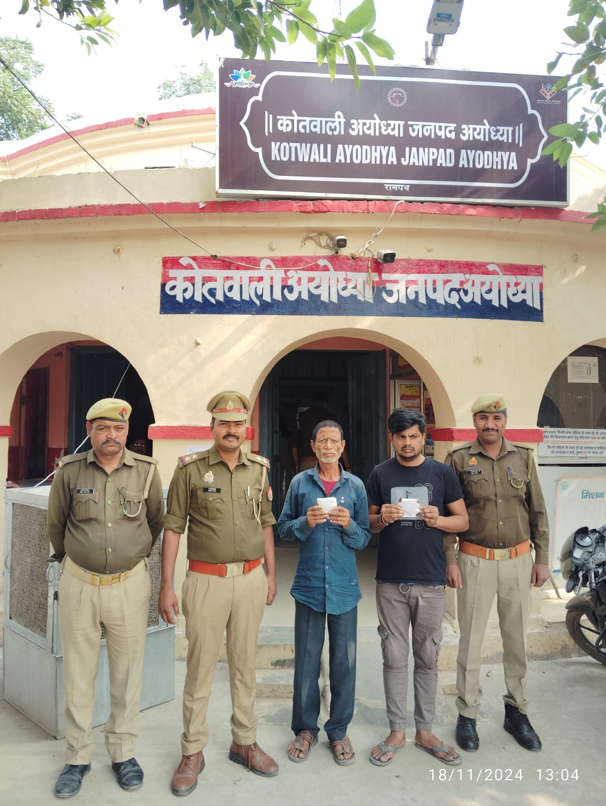 अयोध्या (क्राइम रिपोर्टर) संतोष कुमार। शासन द्वारा चलाये गये विशेष अभियान चोरी, लूट, डकैटी,हत्या, मादक पदार्थो की रोकथाम के क्रम में वरिष्ठ पुलिस अधीक्षक जनपद अयोध्या के निर्देशन में अपर पुलिस अधीक्षक नगर महोदय के निर्देशन में व क्षेत्राधिकारी अयोध्या के कुशल पर्यवेक्षण में एवं थाना कोतवाली अयोध्या के प्रभारी निरीक्षक द्वारा गठित टीम के कुशल नेतृत्व में 1.महेंद्र कुमार उर्फ मिंटू पुत्र तिलक राम निवासी मनकापुर थाना मनकापुर जनपद गोंडा उम्र करीब 33 वर्ष 2. सुशील कुमार पुत्र स्वर्गीय राम पदारथ निवासी बस्तीपुर थाना मनकापुर जनपद गोंडा उम्र करीब 55 वर्ष को बस्ती बाईपास की सर्विस लेन अयोध्या गोरखपुर राजमार्ग से समय 07.30 बजे कुल 100 ग्रा. अवैध स्मैक के साथ गिरफ्तार किया गया गिरफ्तार शुदा अभि.गण उपरोक्त को सम्बधित माननीय न्यायालय रवाना किया गया ।