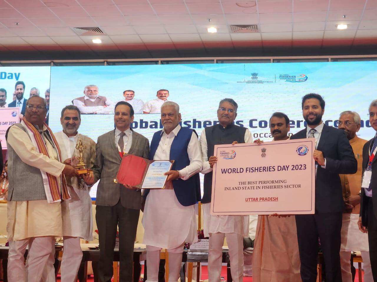 अंतरदेशीय मछली पालन (मैदानी क्षेत्र) में प्रथम स्थान प्राप्त हुआ। गुजरात मे आयोजित कांफ्रेस में उत्तर प्रदेश के मत्स्य पालन मंत्री डॉ संजय निषाद जी को केंद्रीय मत्स्य एवं पशुधन मंत्री श्री पुरूषोत्तम रुपाला जी से पुरुस्कृत किया गया। इस अवसर पर केंद्रीय मत्स्य एवं पशुधन राज्यमंत्री श्री संजीव बाल्यान जी, उत्तर प्रदेश मत्स्य विभाग के प्रमुख सचिव श्री रजनीश दुबे, एवं विशेष सचिव श्री प्रशांत शर्मा जी मौजूद रहे।