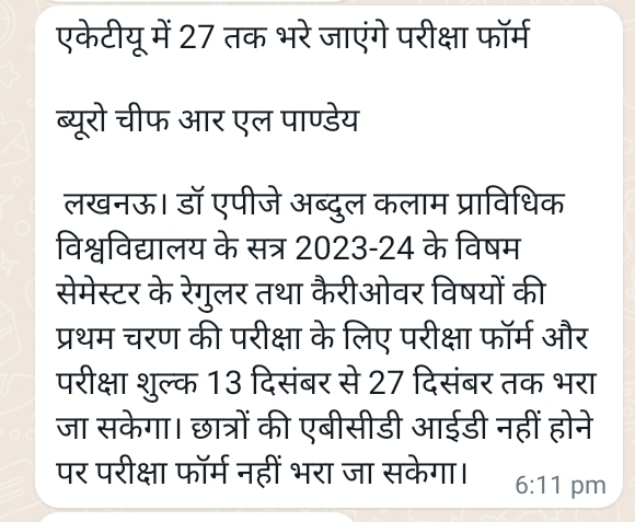 लखनऊ। डॉ0 एपीजे अब्दुल कलाम प्राविधिक विश्वविद्यालय के संबद्ध संस्थानों की पांच छात्राओं का चयन कैंमस प्लेसमेंट के जरिये मल्टीनेशनल कंपनी आईबीएम में हुआ है। कंपनी ने इन छात्राओं को कई राउंड की चयन प्रक्रिया के बाद चुना। इन्हें प्रीप्लेसमेंट टाक, ग्रुप डिस्कशन, टेक्निकल टेस्ट देना पड़ा। माननीय कुलपति प्रो0 जेपी पांडेय के निर्देशन में विश्वविद्यालय के टेªेनिंग एंड प्लेसमेंट सेल की ओर से डीन प्रो0 अरूणिमा वर्मा के नेतृत्व में कैंपस प्लेसमेंट का आयोजन किया गया। जिसमें विश्वविद्यालय से संबद्ध कॉलेज के छात्राओं ने हिस्सा लिया। इस कैंपस प्लेसमेंट में बीटेक की छात्राओं का चयन एसो0 सिस्टम इंजीनियर के पद पर 4 लाख 50 हजार रूपये सालाना के पैकेज पर हुआ है। इसके अलावा कई और मल्टीनेशनल कंपनियां कैंपस प्लेसमेंट की प्रक्रिया कर रही हैं। कुलपति प्रो0 जेपी पांडेय ने चयनित छात्रों को शुभकामना देने के साथ ही उनके उज्ज्वल भविष्य की कामना की। साथ ही कहा कि विश्वविद्यालय के छात्रों को ज्यादा से ज्यादा रोजगार के अवसर दिलाने पर जोर है। इस क्रम में कैंपस प्लेसमेंट कराया जा रहा है।