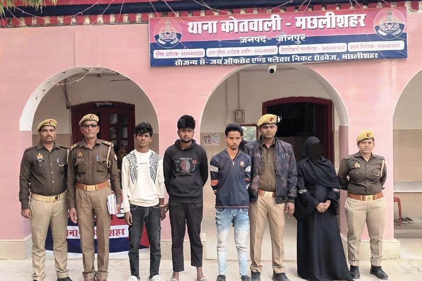 जौनपुर पुलिस अधीक्षक , डा0 अजय पाल शर्मा द्वारा अपराध एवं अपराधियो के विरुद्ध चलाये गये सघन अभियान के क्रम में अपर पुलिस अधीक्षक (ग्रामीण), श्री शैलेन्द्र सिंह महोदय के कुशल निर्देशन तथा क्षेत्राधिकारी मछलीशहर, श्री गिरेन्द्र कुमार सिंह के कुशल पर्यवेक्षण मे प्रभारी निरीक्षक सत्य प्रकाश सिंह व उ0नि0 शिवकुमार सिंह उ0नि0 अखिलेश कुमार यादव मय हमराही कर्मचारीगण के द्वारा दिनांक 23.11.24 को मु0अ0सं0 378/24 धारा 137(2)/103(1)/238/61(2)/64 बी0एन0एस0 व ¾ पाक्सो एक्ट व 3(2)5 एससी एसटी एक्ट से संबंधित वांछित अभियुक्तगण 1.मन्नान पुत्र अब्दुल मजीद 2.मोहम्मद फिरदोस पुत्र शमीम 3.रूखसार पत्नी इन्तजार शेख 4.अपचारी रेहान पुत्र सादिक खान नि0गण मुस्तफाबाद थाना मछलीशहर जौनपुर को गिरफ्तार कर जेल भेजा गया।
