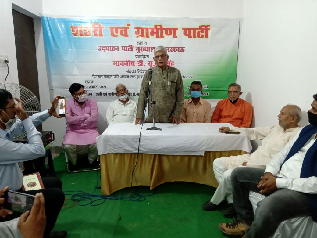 लखनऊ। अर्बन एण्ड रूरल पार्टी के राष्ट्रीय मुख्यालय का उद्घाटन डा० यू.बी सिंह, संयुक्त निदेशक (से० नि०), रीजनल सेंन्ट्रल फॉर अर्बन इंवायरमेन्टल स्टडीज, विश्वविद्यालय, लखनऊ द्वारा किया गया। राष्ट्रीय अध्यक्ष डी के अवस्थी,राष्ट्रीय सचिव ए. रुस्दान अंसारी, राष्ट्रीय उपाध्यक्ष मिथिलेश कुमार शर्मा, प्रदेश अध्यक्ष शशिकुमार मिश्र, , शिवकंठ पाण्डेय अध्यक्ष के. डी.एल कानपुर व विशेष रूप से प्रदेश प्रभारी परशुराम सिंह, महिला प्रदेश प्रभारी श्रीमती गायत्री जी ने भी भाग लिया । इस अवसर पर राष्ट्रीय पार्टी चीफ जुनैद अंसारी ने अपने सम्बोधन में कहा कि पार्टी का यह नारा है कि