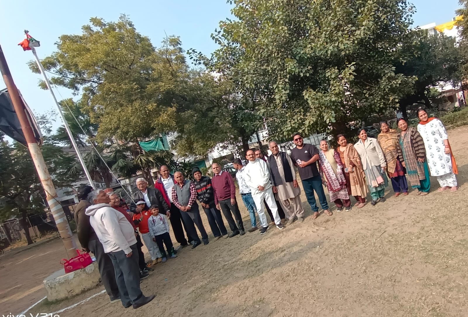 लखनऊ – गोमतीनगर विवेक खण्ड 3 व 4 जनकल्याण समिति के द्वारा 77वें गणतंत्र दिवस के अवसर पर विवेक खण्ड 4, गोमतीनगर स्थित् अभिषेक मेमोरियल पार्क में देश के कर्णधार वेधा खण्डेलवाल, समर्थ, कृष्णा, कार्तिक व आकाश के द्वारा झण्डा फहराया। समिति के सचिव रूप कुमार शर्मा ने बताया कि समिति द्वारा प्रति वर्ष बच्चों को देशभक्ति की भावना जाग्रत करने के उद्देश्य से बच्चों के द्वारा ही झण्डा फहराया जाता है।