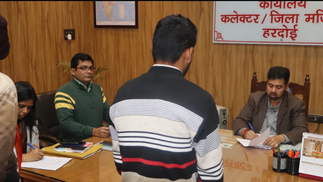 *हरदोई* गुरुवार को कलेक्ट्रेट कक्ष में जन सुनवाई के दौरान जिलाधिकारी अनुनय झा ने आमजन की समस्याओं को सुना तथा जन सुनवाई में कुल 82 शिकायतें प्राप्त हुई, जिसके त्वरित निस्तारण के निर्देश सम्बन्धित अधिकारियों को दिए। जिलाधिकारी ने कहा कि प्रत्येक शिकायत का निस्तारण समयबद्व और गुणवत्तापूर्ण पूर्ण हो। जन सुनवाई में प्राप्त कुछ शिकायतों का जिलाधिकारी ने मौके पर ही समाधान किया। उन्होंने राजस्व विभाग के अधिकारियों से कहा कि उत्तराधिकार का कोई भी प्रकरण लंबित न रखें तथा कृषक दुर्घटना बीमा योजना के किसी आवेदन को लंबित न रखा जाये व पात्रों को योजनाओं का लाभ दिया जाये। इस अवसर पर अतिरिक्त मजिस्ट्रेट भूमिका यादव व अन्य सम्बन्धित विभाग के अधिकारी/कर्मचारी उपस्थित रहे।