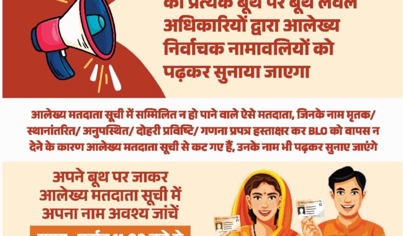विधानसभा क्षेत्रों के समस्त मतदेय स्थलों पर 18 जनवरी 2026 को मतदाता सूची के आलेख्य प्रकाशन का होगा वाचन