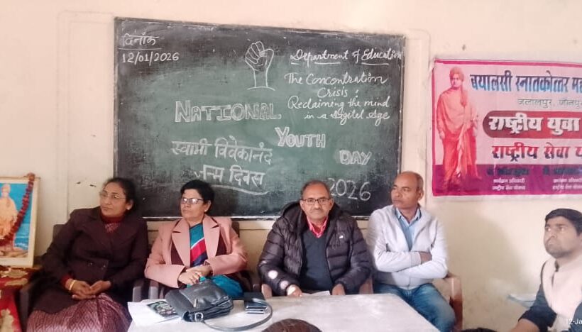 एकाग्रता ही सफलता का मूल मंत्र: डॉ अलकेश्वरी सिंह। जौनपुर। बयालसी महाविद्यालय, जलालपुर, जौनपुर के सभागार में राष्ट्रीय युवा दिवस 2026 के अवसर पर शिक्षाशास्त्र…