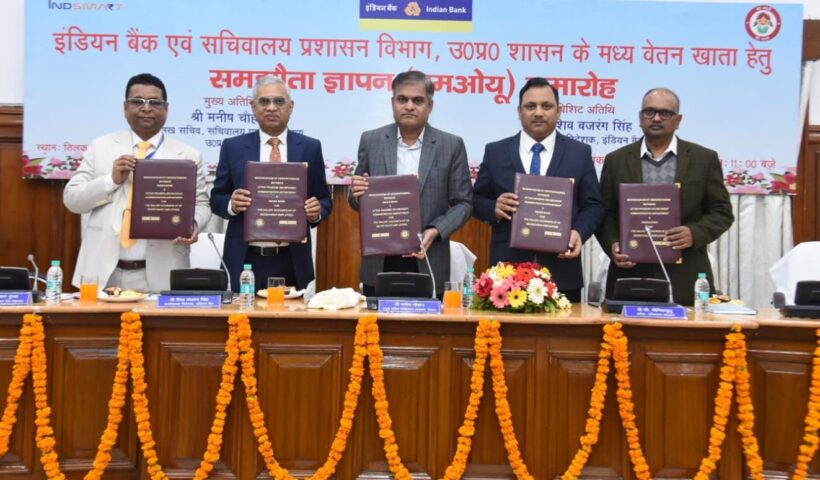 इंडियन बैंक एवं उत्तर प्रदेश सचिवालय प्रशासन विभाग के मध्य वेतन खाता हेतु एमओयू पर हस्ताक्षर