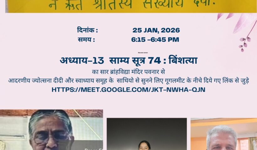 गीता प्रवचन स्वाध्याय का 77 वाँ सप्ताह आज नर्मदा जयंती के दिन सफलतापूर्वक सम्पन्न : अमित परमार गीता प्रवचन स्वाध्याय का 77वाँ सप्ताह ऑनलाइन माध्यम…
