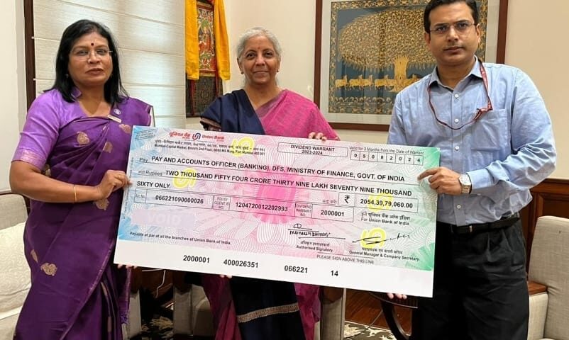 यूनियन बैंक ऑफ इंडिया ने वित्त वर्ष 2023-24 के लिए भारत सरकार को ₹ 2054 करोड़ का रिकॉर्ड लाभांश दिया ब्यूरो चीफ आर एल पाण्डेय…