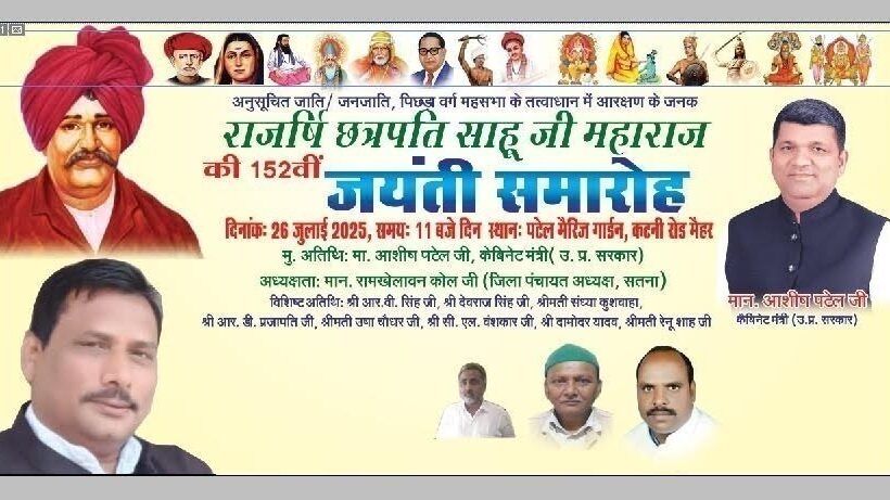 मैहर में आयोजित होगी छत्रपति साहू जी महाराज की 152वीं जयंती संकलन रानू वाजपेई – मुख्य अतिथि के रूप में शामिल होंगे अपना दल (एस)…