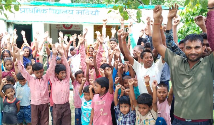 ग्रामीणों का विरोध प्रदर्शन: गोला क्षेत्र के मठिया में प्राथमिक स्कूल के विलय से नाराज लोगों ने की स्कूल फिर शुरू करने की मांग