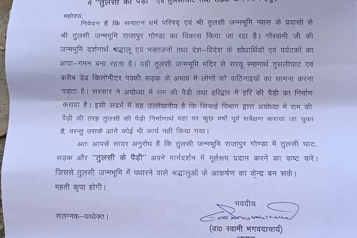 तुलसी की पैड़ी, तुलसी धाम में निर्माण की उठी मांग लखनऊ (आर एल पाण्डेय)।डॉ स्वामी भगवदाचार्य अंतरराष्ट्रीय अध्यक्ष सनातन धर्म परिषद ने मुख्यमंत्री से मांग…